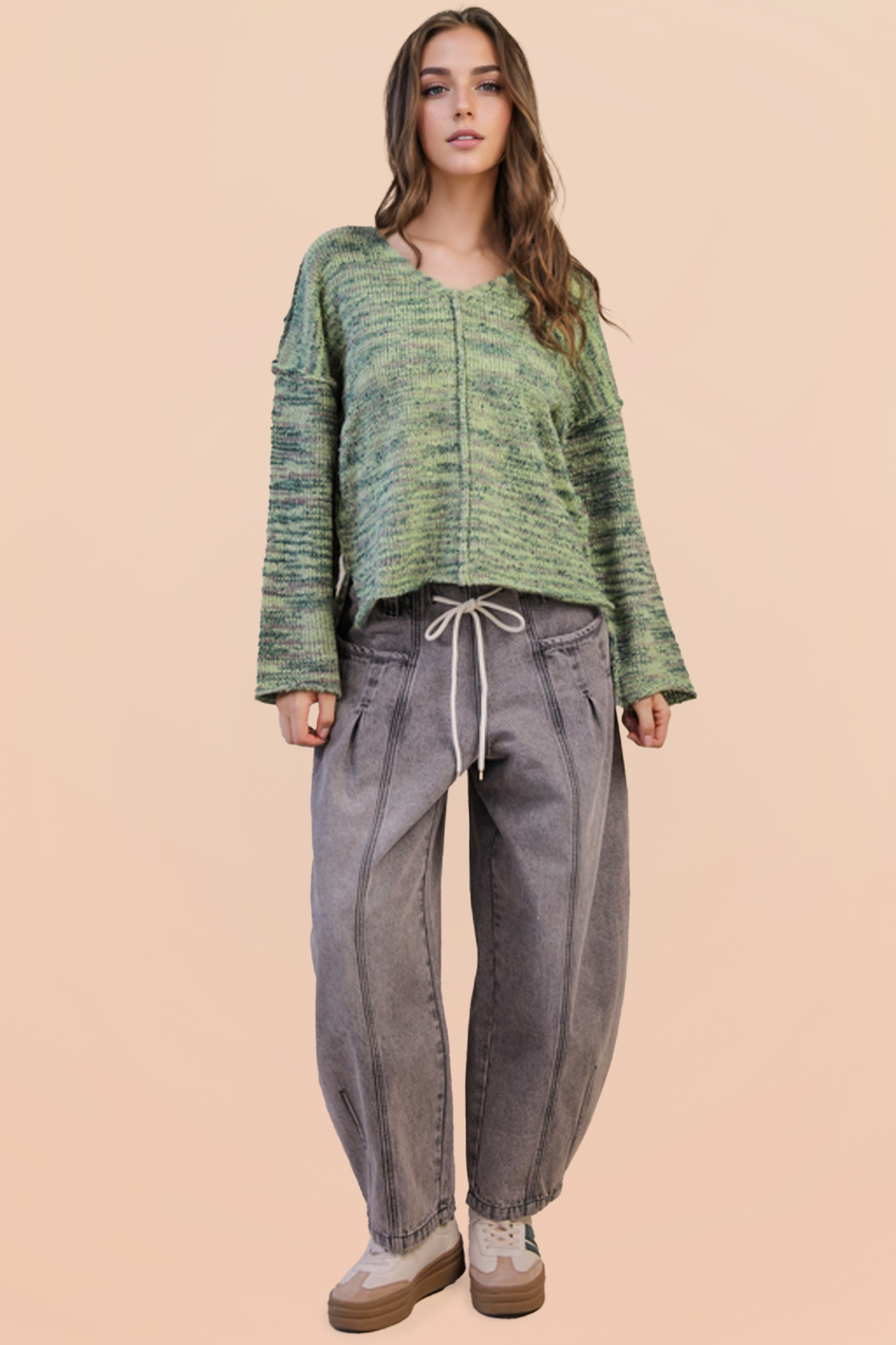 Raglan Sleeve Color Block Casual Textured Knit Top