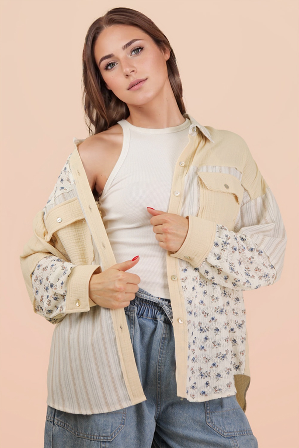 Striped & Solid Button Down Fitted Knit Tank Top